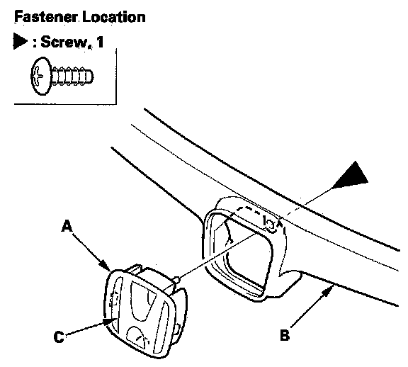 3. If emblem (C) replacement is necessary, refer to emblem/sticker replacement.