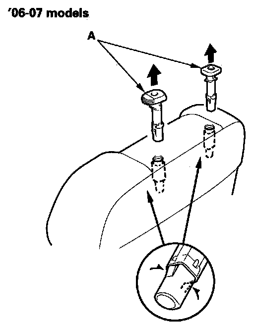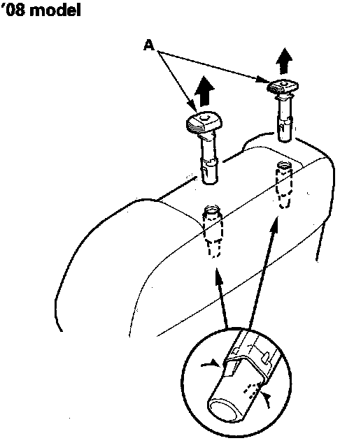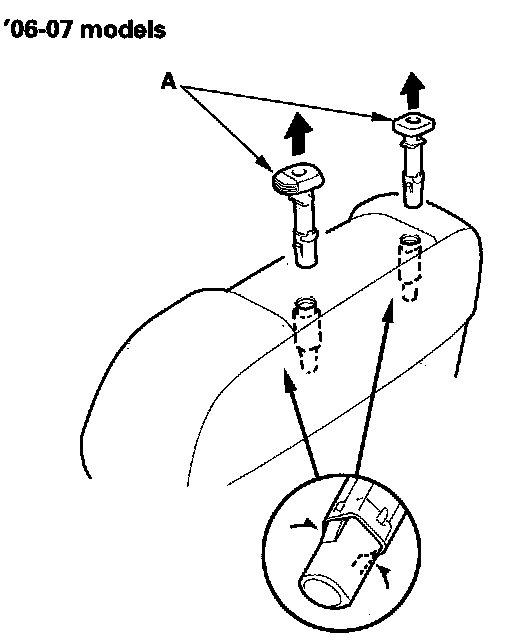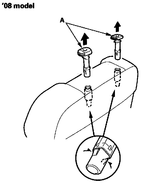12. Pinch the tabs on the ends of the head restraint guides (A), and remove them from the seat-back.