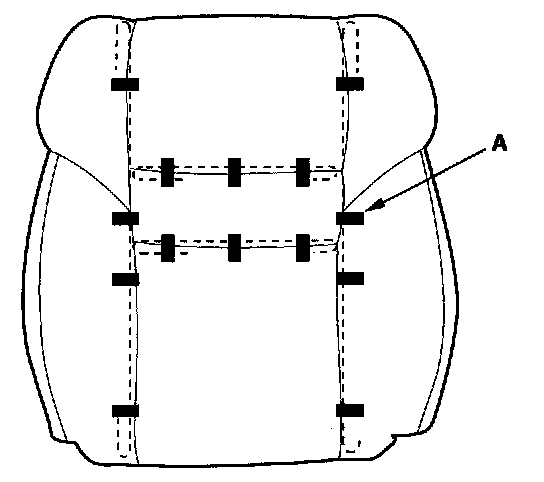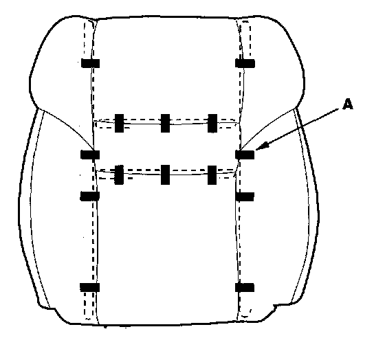 14. Pull back the edge of the seat-back cover all the way around, and release the clips (A), then remove the seat-back cover.
