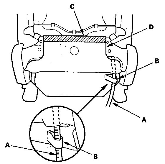 - Before installing the side airbag (B), make sure the reinforcing cloth (C) is fixed on the seat-back frame (D) securely.