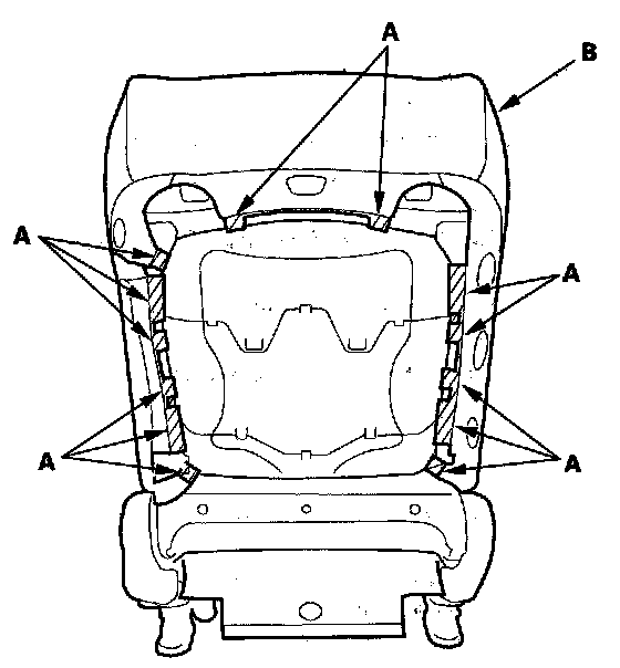 13. Remove the seat-back cover/pad (A) from the seat (B).