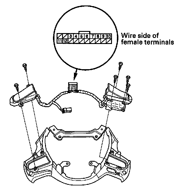 Cruise Control Combination Switch Test/ReplacementSRS components are located in this area. Review the SRS component locations, and precautions and procedures, before doing repairs or service.