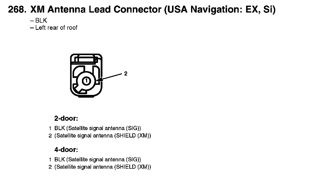 268. XM Antenna Lead Connector (USA Navigation: EX, Si):
