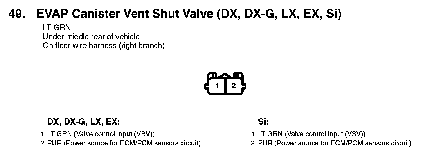 49. EVAP Canister Vent Shut Valve (DX, DX-G, LX, EX, Si):