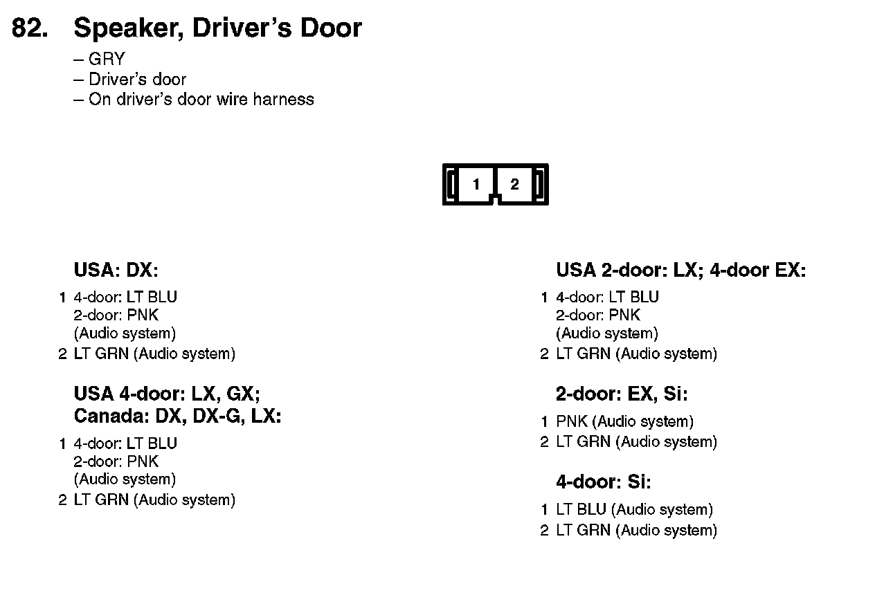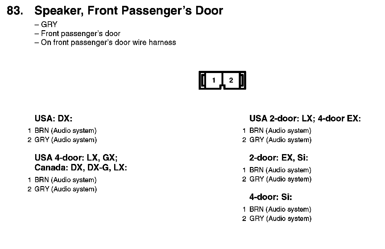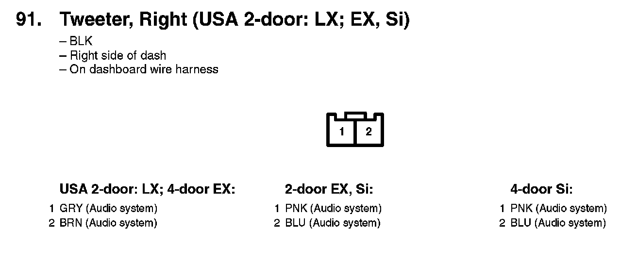 91. Tweeter, Right (USA 2-door: LX; EX, Si):