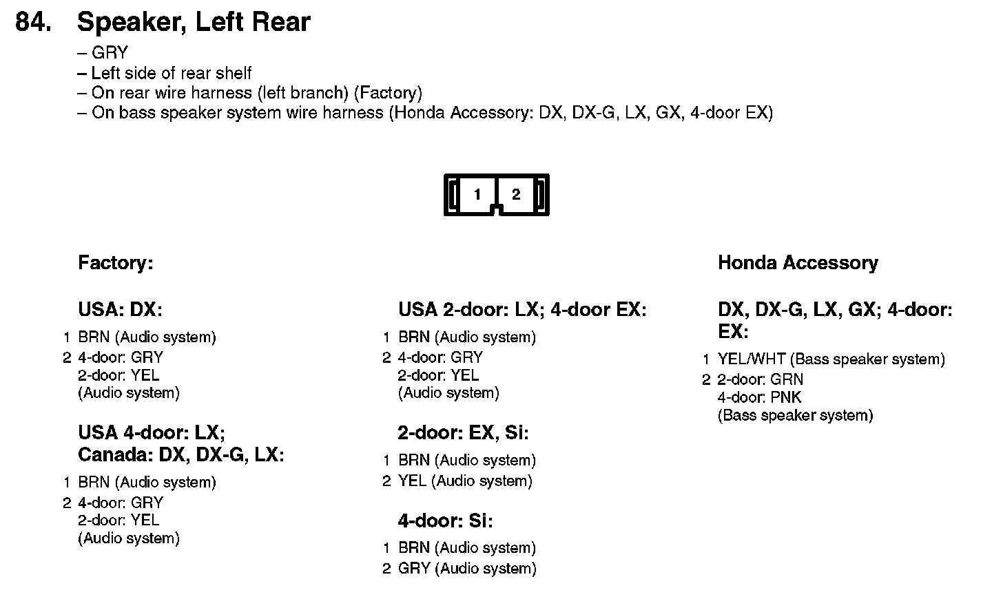 90. Tweeter, Left (USA 2-door: LX; EX, Si):