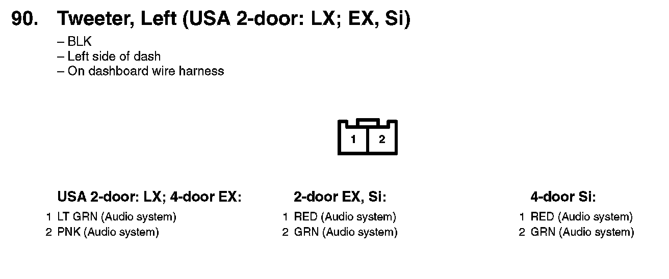 90. Tweeter, Left (USA 2-door: LX; EX, Si):