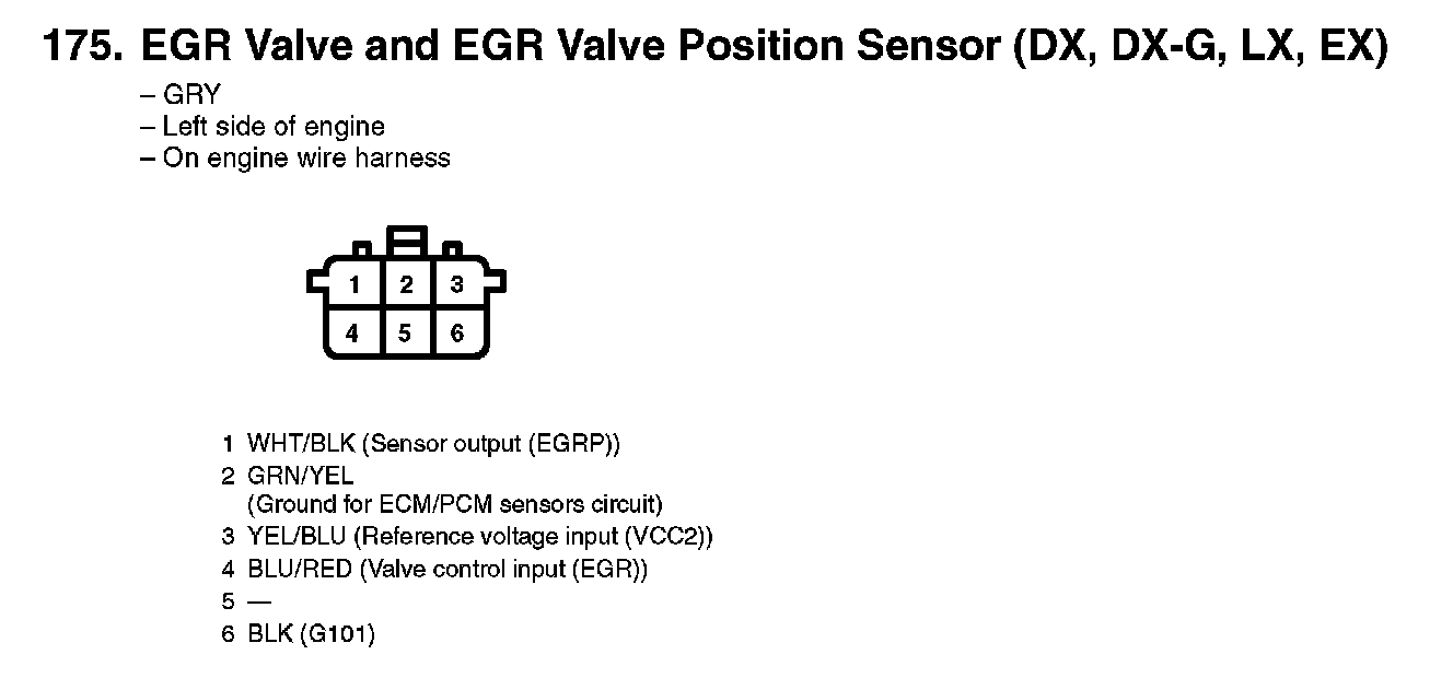 175. EGR Valve And EGR Valve Position Sensor (DX, DX-G, LX, EX):