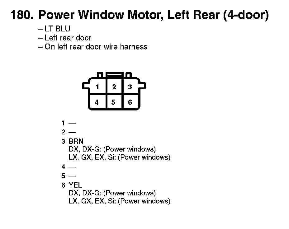 180. Power Window Motor, Left Rear (4-door):
