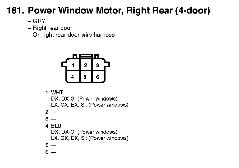 181. Power Window Motor, Right Rear (4-door):