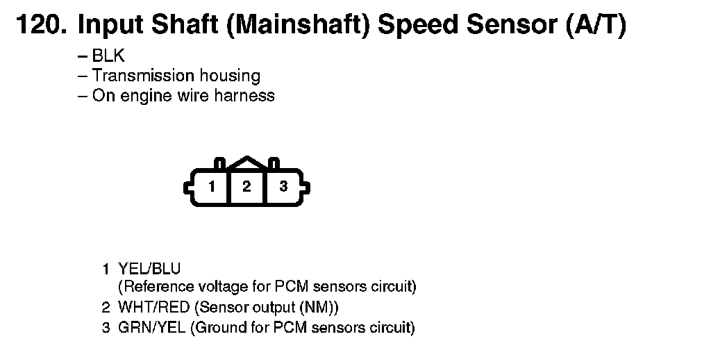 120. Input Shaft (Mainshaft) Speed Sensor (A/T):