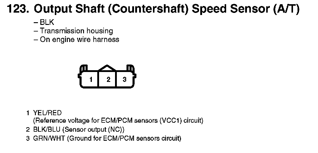 123. Output Shaft (Countershaft) Speed Sensor (A/T):
