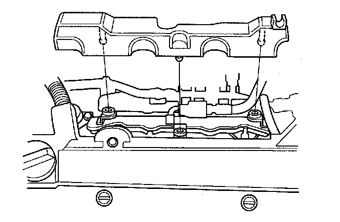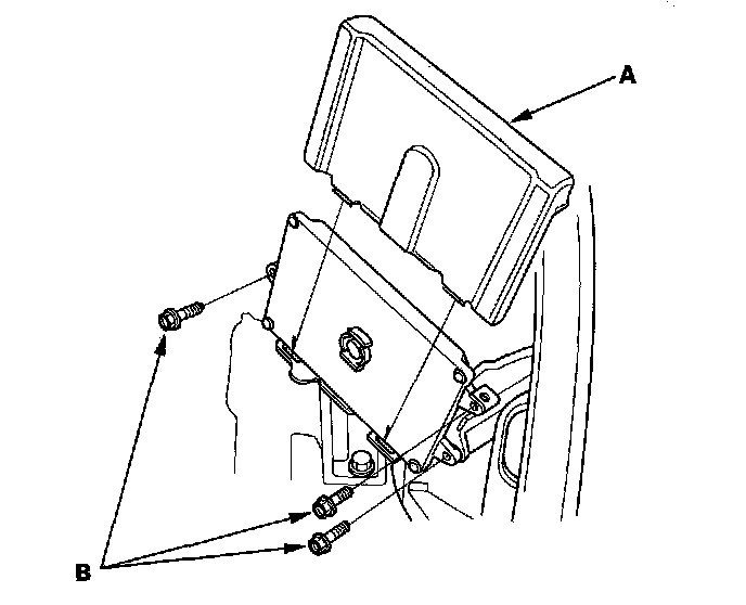 13. Remove the engine control module (ECM)/powertrain control module (PCM) cover (A), then remove the three bolts (B) securing the ECM/PCM.