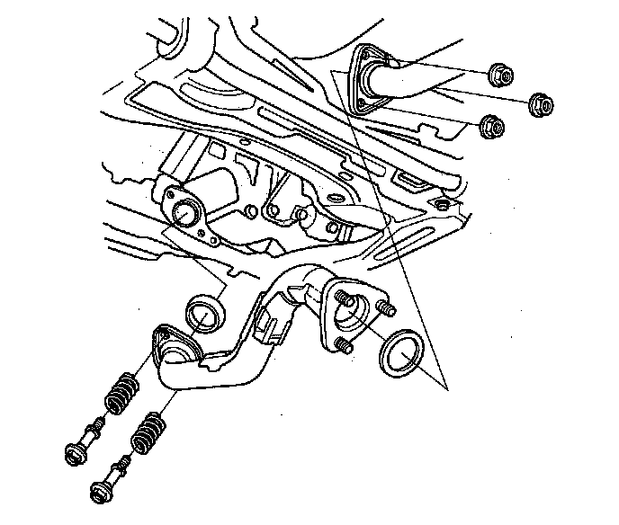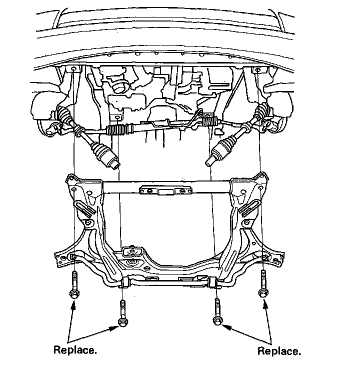 48. Loosen the front subframe body mount bracket mounting bolts (A) on both sides.