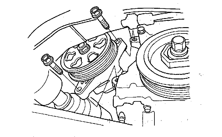 32. Remove the power steering (P/S) pump without disconnecting the P/S hoses from the pump.