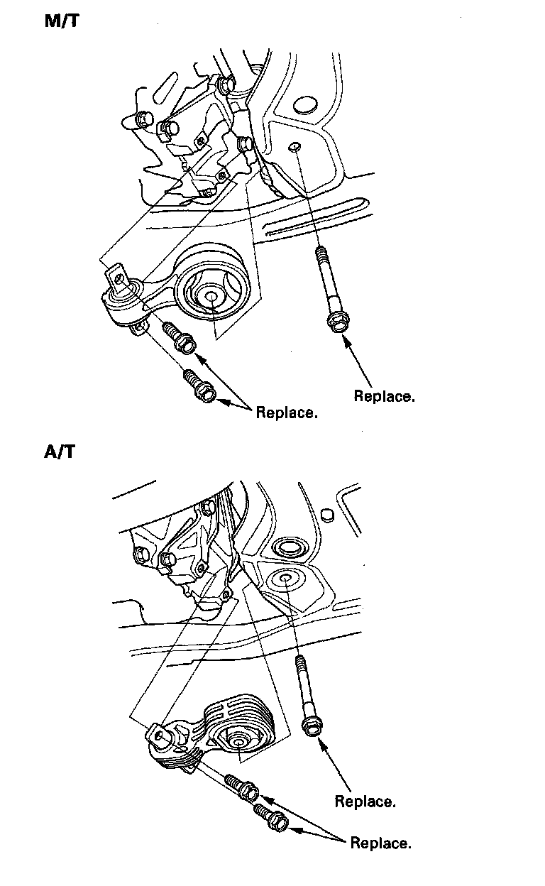 18. M/T model: Remove the clutch slave cylinder, and the clutch line bracket mounting bolt.