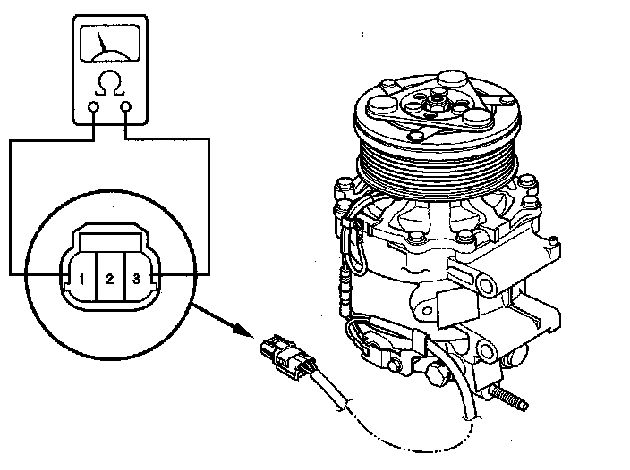 4. Check for continuity between the A/C compressor clutch connector No. 1 and No. 3. If there is no continuity, replace the thermal protector.