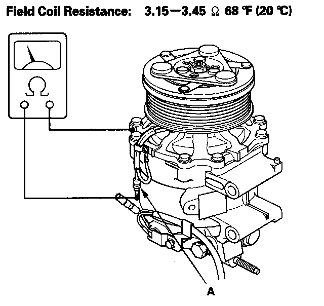 5. Disconnect the field coil connector (A). Check resistance of the field coil. If resistance is not within specifications, replace the field coil.
