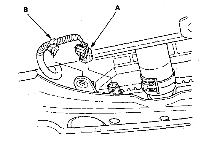 10. Disconnect the engine coolant temperature (ECT) sensor 2 connector (A), and remove the harness clamp (B).