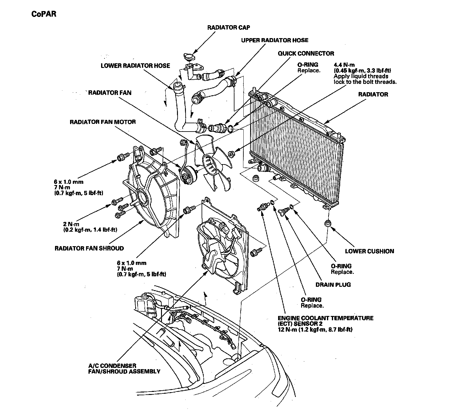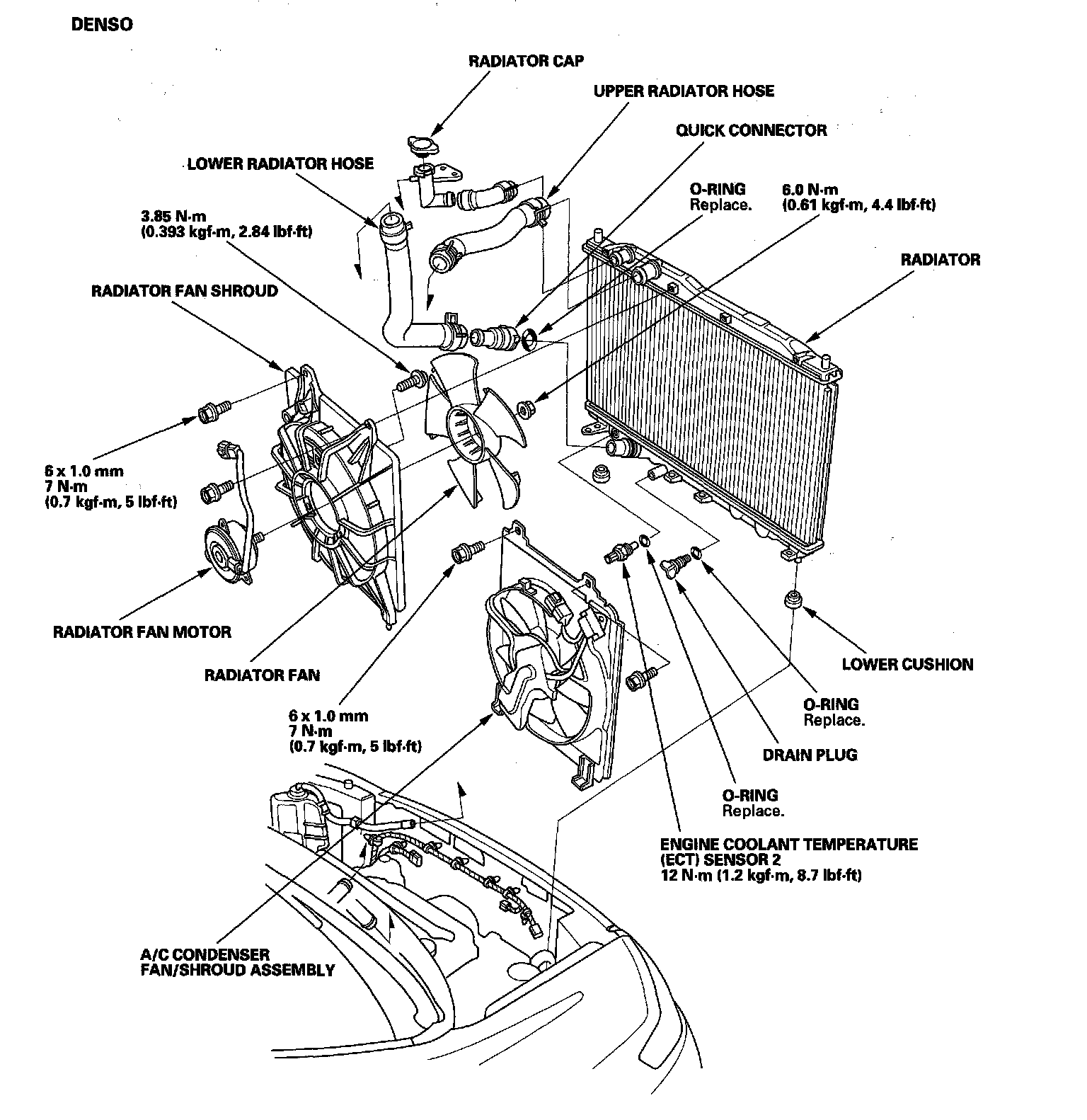 Radiator and Fan Replacement1. Make sure you have the anti-theft code for the audio system or the navigation system (if equipped), then write down the audio presets.