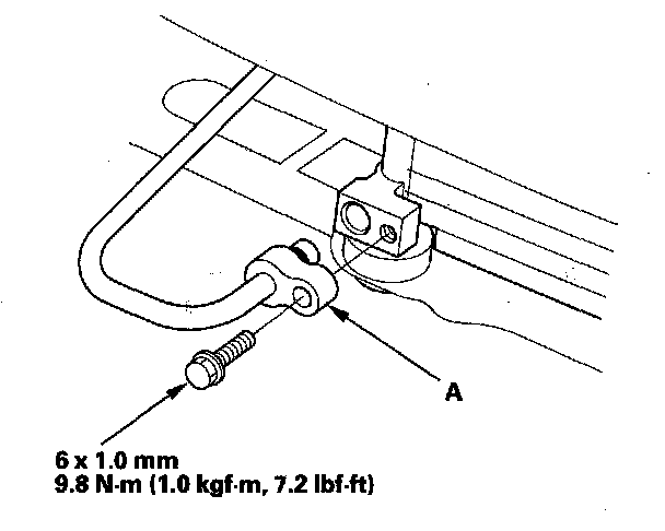 4. Remove the bolt, then disconnect the receiver line (A) from the A/C condenser.
