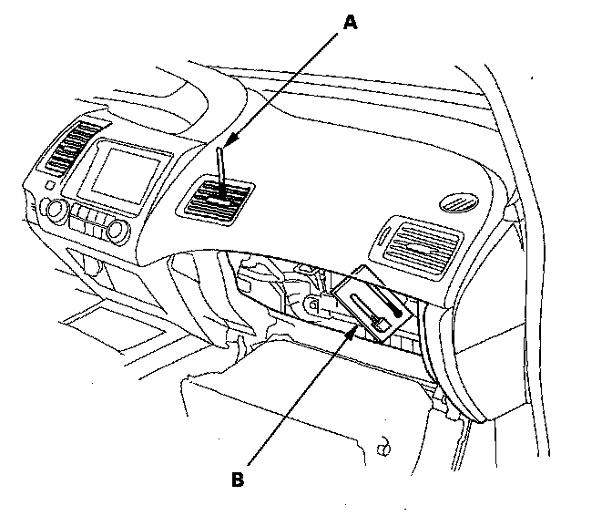 3. Open the glove box. Remove the glove box stop on each side, then let the glove box hang down.
