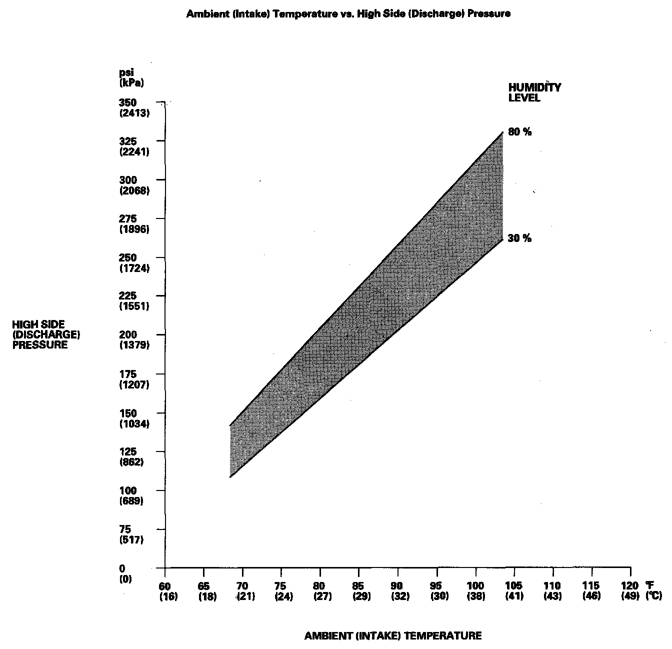 9. To complete the high side (discharge pressure)/ambient air (intake) temperature chart: