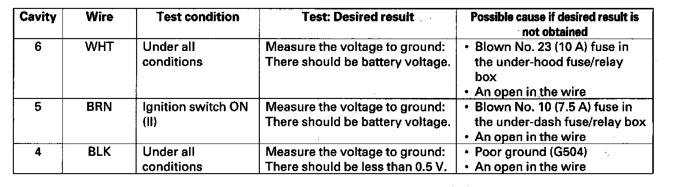 4. With the connector still disconnected, make these input tests at the connector.