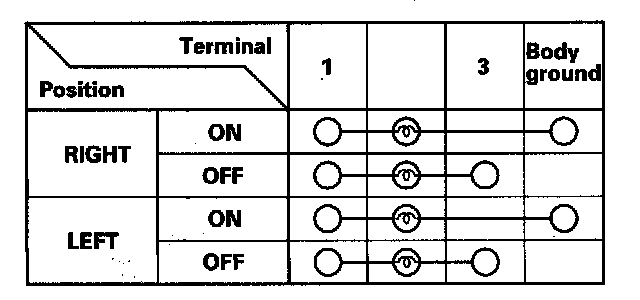5. Check for continuity between the terminals in each switch position according to the table.