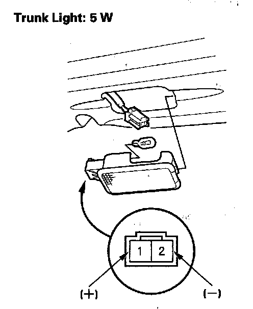 4. Check for continuity between the No. 1 (+) and No. 2 (-) terminals. There should be continuity. If there is no continuity, check the bulb. If the bulb is OK, replace the trunk light assembly.