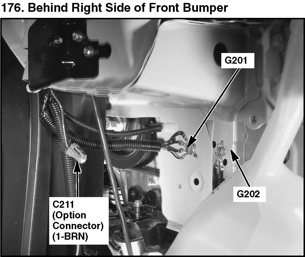 176. Behind Right Side Of Front Bumper:
