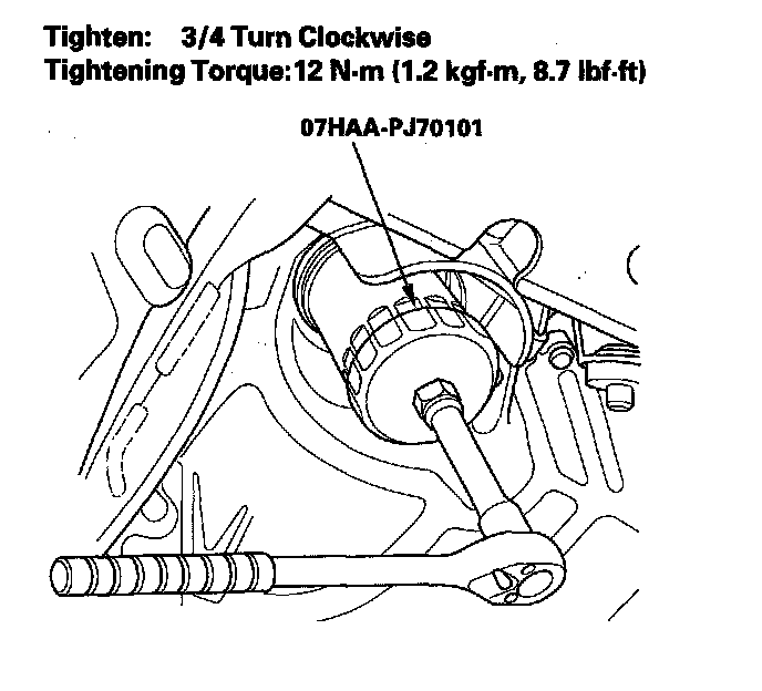 5. After the rubber seal seats, tighten the oil filter clockwise with the oil filter wrench.