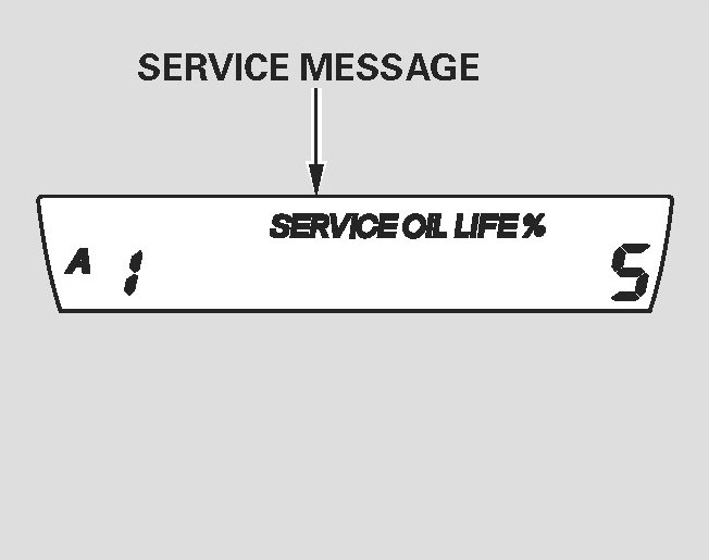 When the remaining engine oil life is 5 to 1 percent, you will see a "SERVICE" message along with the same maintenance item code(s), every time you turn the ignition switch to the ON (II) position.