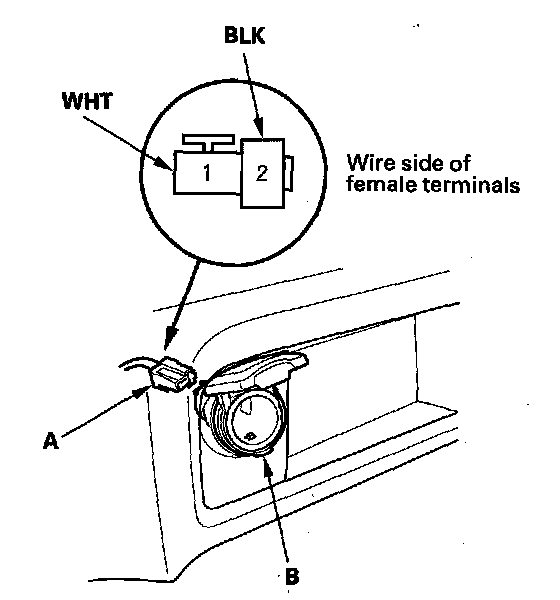 5. Measure the voltage between the power accessory socket 2P connector No. 1 terminal and body ground. There should be battery voltage.