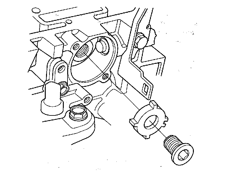 5. Hold the camshaft with a 27 mm open-end wrench, then loosen the bolt.