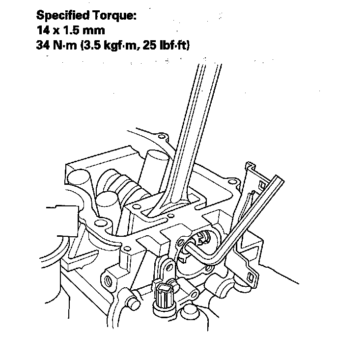 2. Hold the camshaft with a 27 mm open-end wrench, then tighten the bolt.