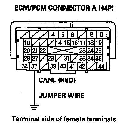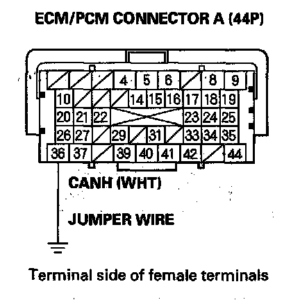 21. Remove the jumper wire from ECM/PCM connector A(44P).