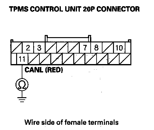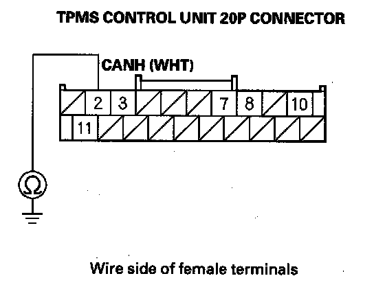 20. Check for continuity between TPMS control unit 20P connector terminal No. 11 and body ground.