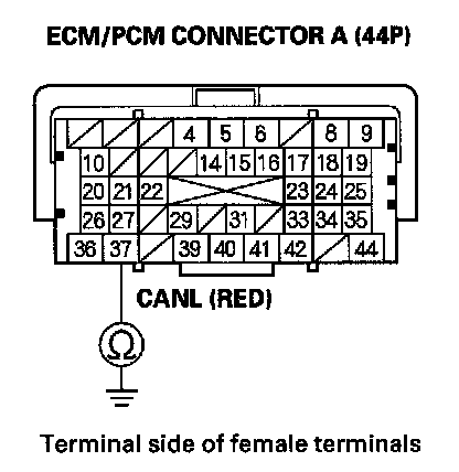 38. Check for continuity between ECM/PCM connector terminal A37 and body ground.