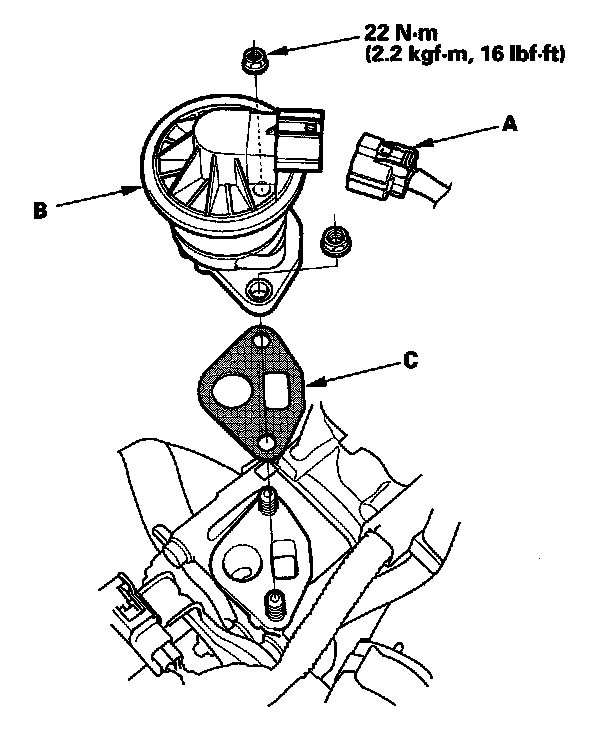 4. Install the parts in the reverse order of removal with a new gasket (C).