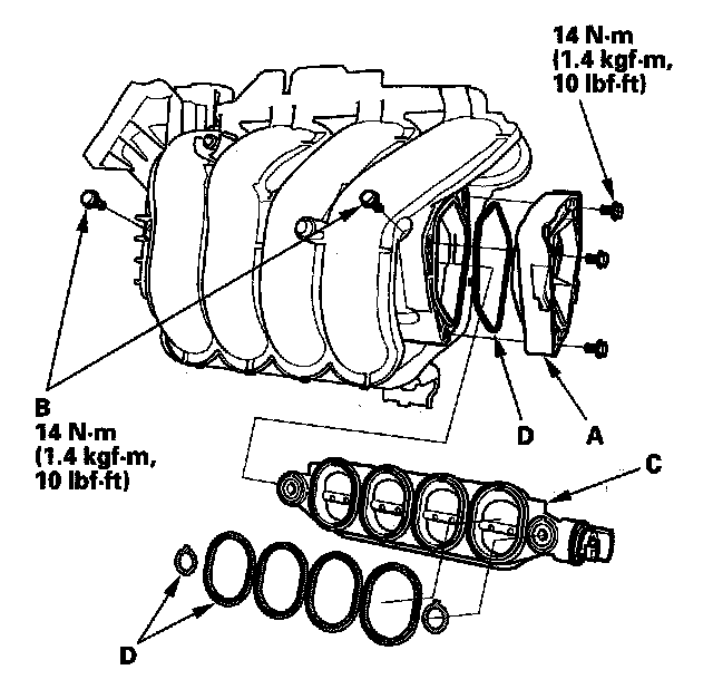 4. Install the parts in the reverse order of removal with new O-rings (D).