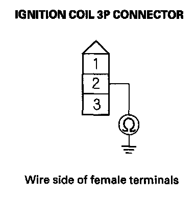 5. Check for continuity between each ignition coil 3P connector terminal No. 2 and the body ground.
