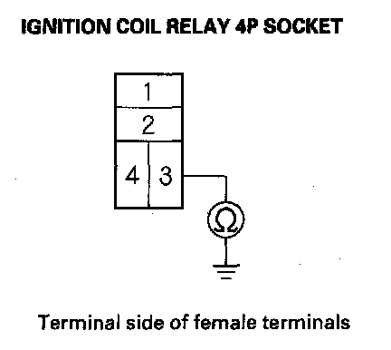 11. Check for continuity between ignition coil relay 4P socket terminal No. 3 and body ground.