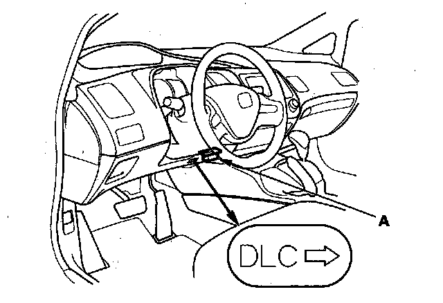 5. Connect the HDS to the DLC (A) located behind the driver's dashboard lower cover, and go to the A/T Mod Menu.