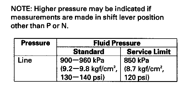 9. Measure the line pressure at the line pressure inspection port in P or N while holding the engine speed at 2,000 rpm.