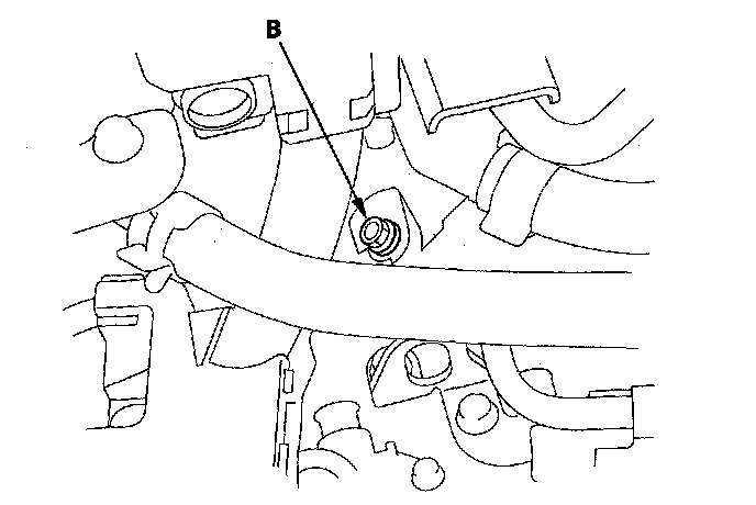 16. Measure the 1st clutch pressure at the 1st clutch pressure inspection port (B) while holding the engine speed at 2,000 rpm.