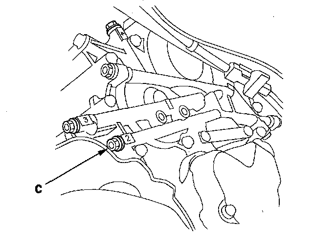 17. Shift to 2, and measure the 2nd clutch pressure at the 2nd clutch pressure inspection port (C) while holding the engine speed at 2,000 rpm.