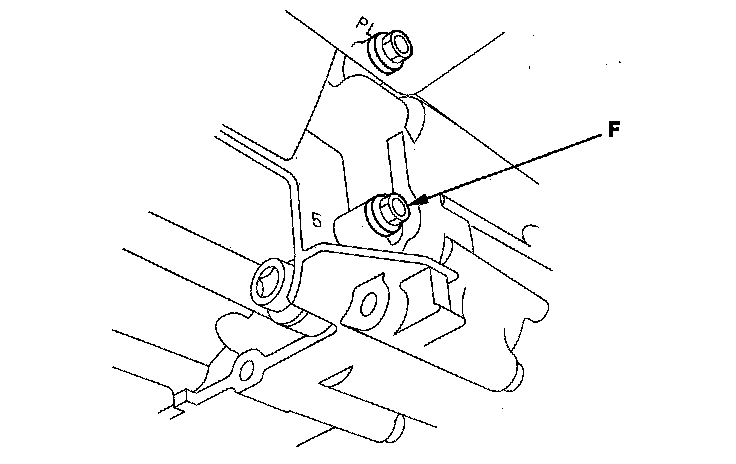 22. Connect the A/T oil pressure gauge to the 5th clutch pressure inspection port (F)