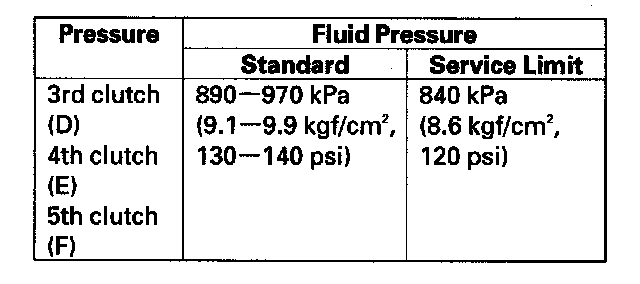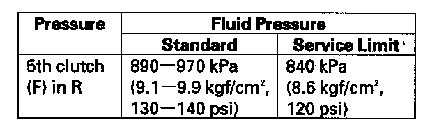 28. Shift to R, then release the brake pedal. Raise the engine speed to 2,000 rpm, and measure the 5th clutch pressure at the 5th clutch pressure inspection port (F)