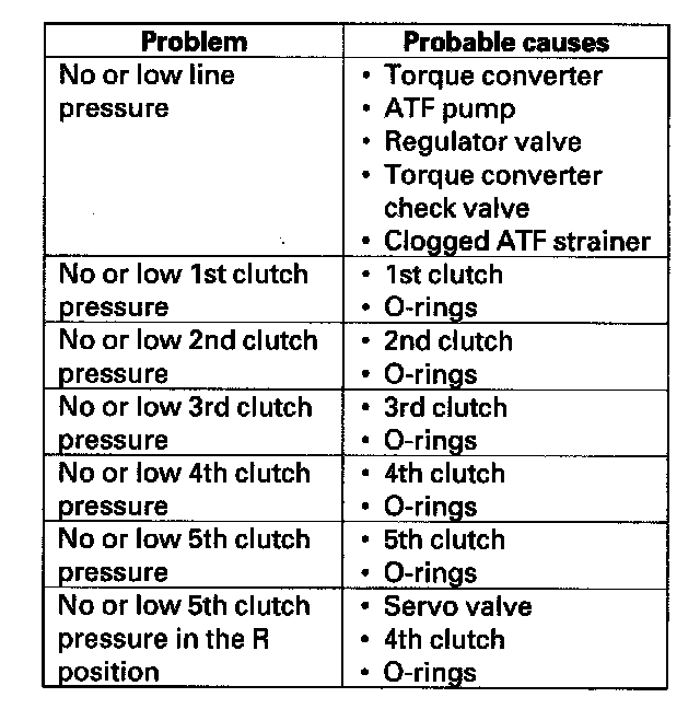 31. If the pressures are out of the service limit, problems and probable causes are listed in the table.